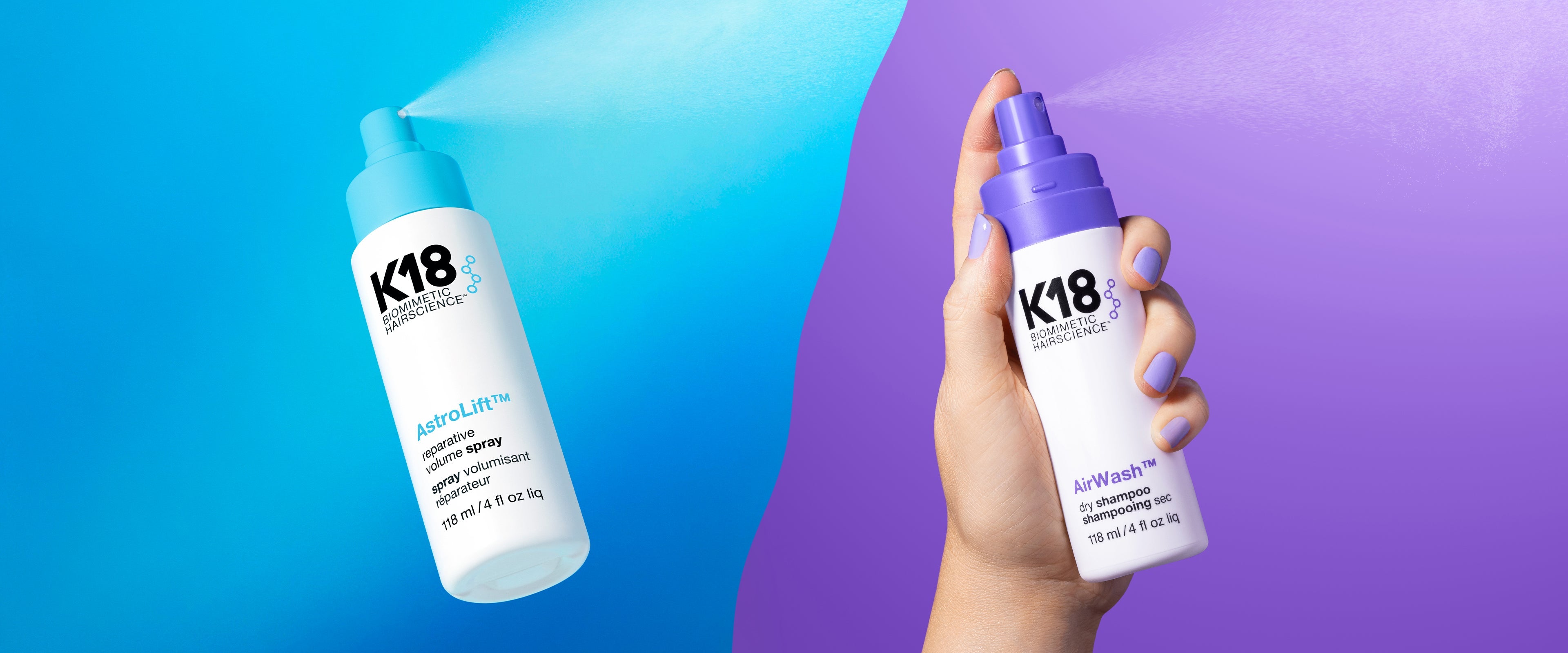 AstroLift™ delivers instant weightless bounce to all hair types. This first-of-its-kind spray brings together inner damage repair with outer volume for 2.5x more all-over volume* and an increase in hair’s diameter by up to 25%*. Since this humidity-resistant powerhouse is also infused with the K18PEPTIDE™ it reverses damage while boosting volume. AstroLift™ works on both damp and dry hair, so you can add touchable volume straight out of the shower or revitalize bounce on second-day hair without sticky residue.